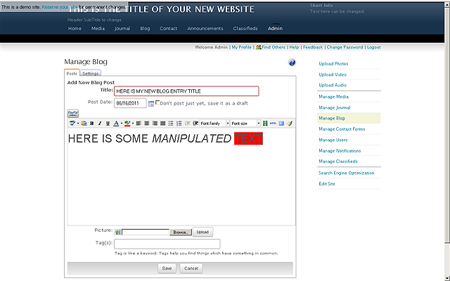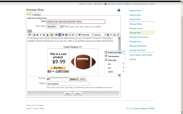 The editor for the Blog has lots of advanced features and even lets you cut &