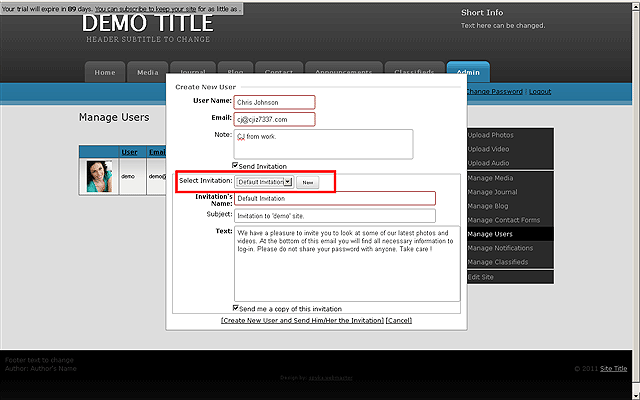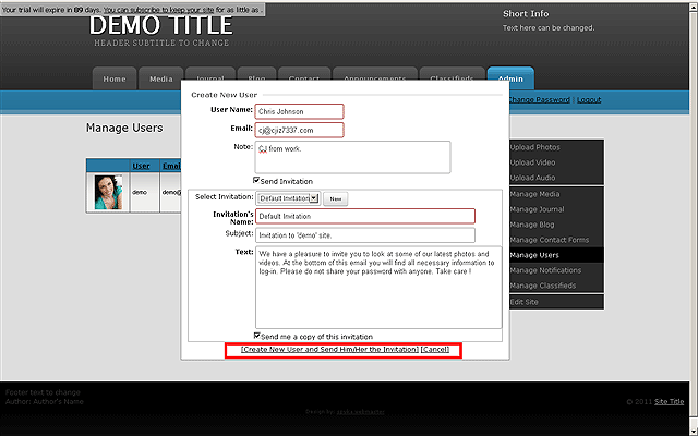 Once you are ready to send the invitation click the CREATE NEW USER AND SEND HIM/HER