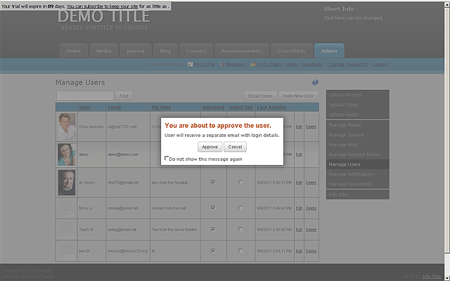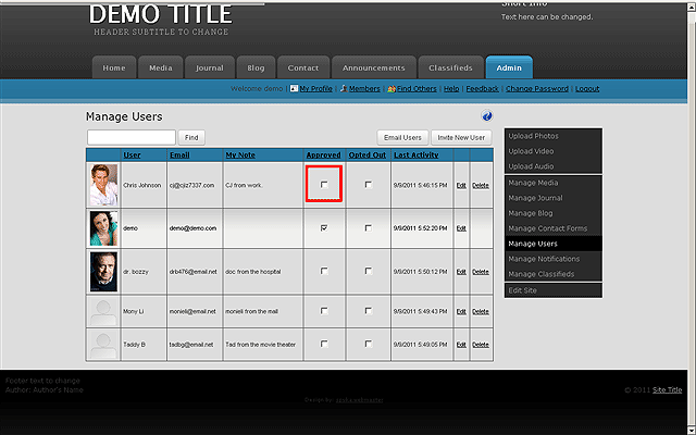 USERS control link. Next you can click the checkbox that says APPROVED for the member