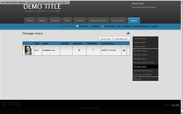Your site even has its own user management and each member of your site gets a profile.