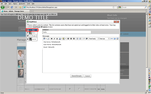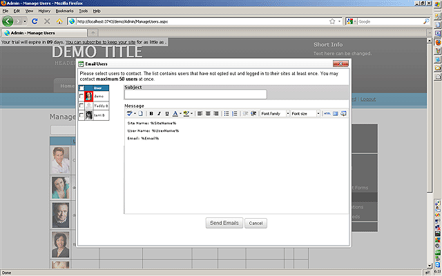NOTE: The amount of members you can email at once is controlled by the network