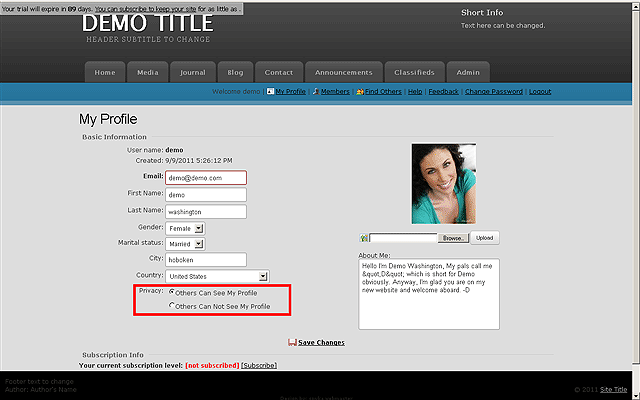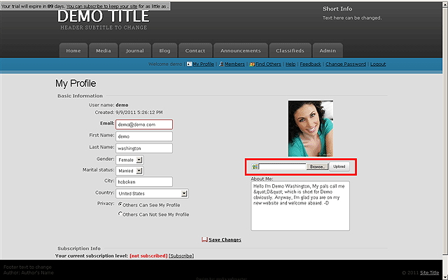 NOTE: Only ONE picture is allowed on a profile but it can be changed at any