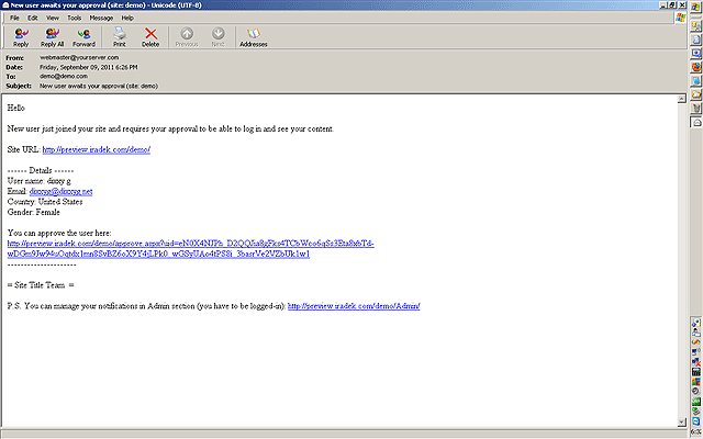 you get (which has a link) that says "YOU CAN APPROVE THE USER HERE"