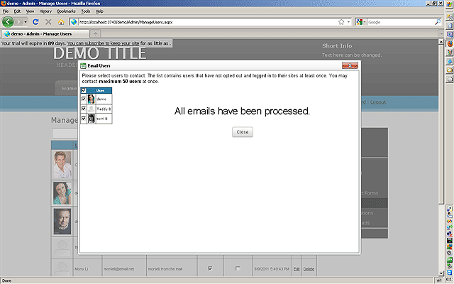 Once you have clicked the SEND EMAILS button the progress bar will appear until