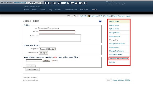Click the SEARCH ENGINE OPTIMIZATION control link.