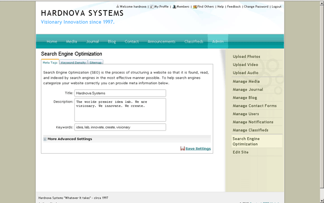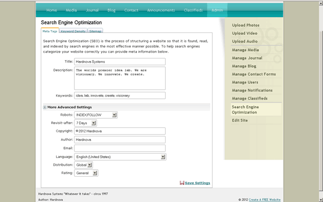 content. Click the SAVE SETTINGS link when finished.