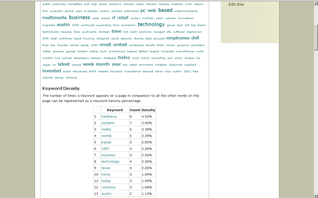 The KEYWORD CLOUD for the page you crawled will show. The overall topic
