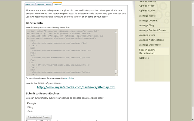 default), the click the SUBMIT TO SEARCH ENGINES button.